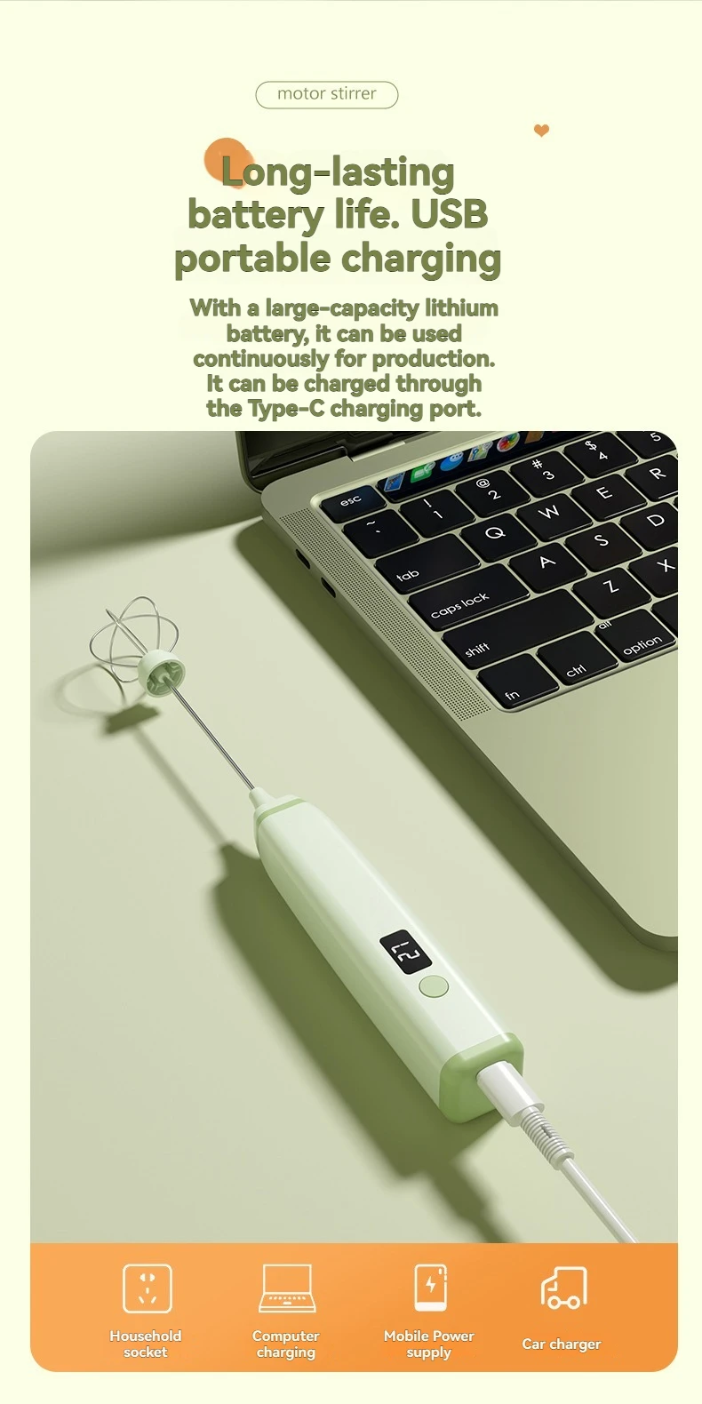 Apportez une touche professionnelle à vos boissons et préparations grâce à ce batteur électrique multifonction, compact et rechargeable par USB.